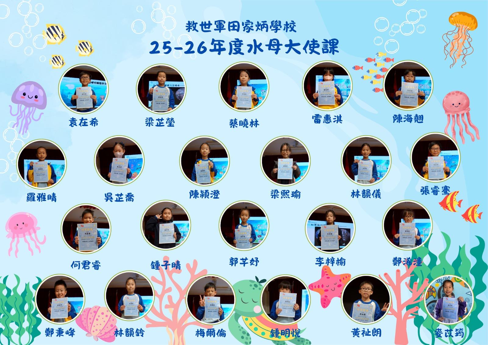 救世軍田家炳學校為首間學校創設水母課程,輔以「水母大使計劃」、「海洋生物課程」及「環保親子工作坊」等,提供科技探索平台,在不同年級的常識課程中,加入不同範疇的stem及生命教育元素,以培養學生的探究能力及尊重生命、愛惜生命的態度。