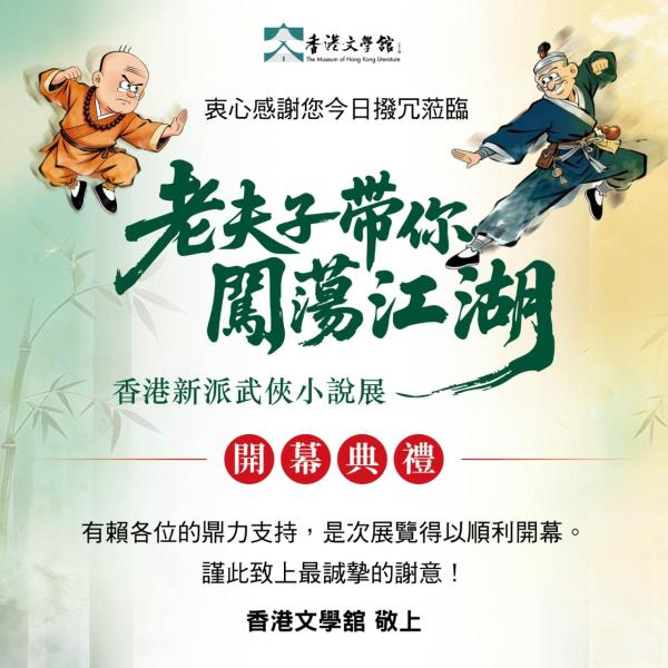 香港文學舘「老夫子帶你闖蕩江湖——香港新派武俠小說展」開幕典禮